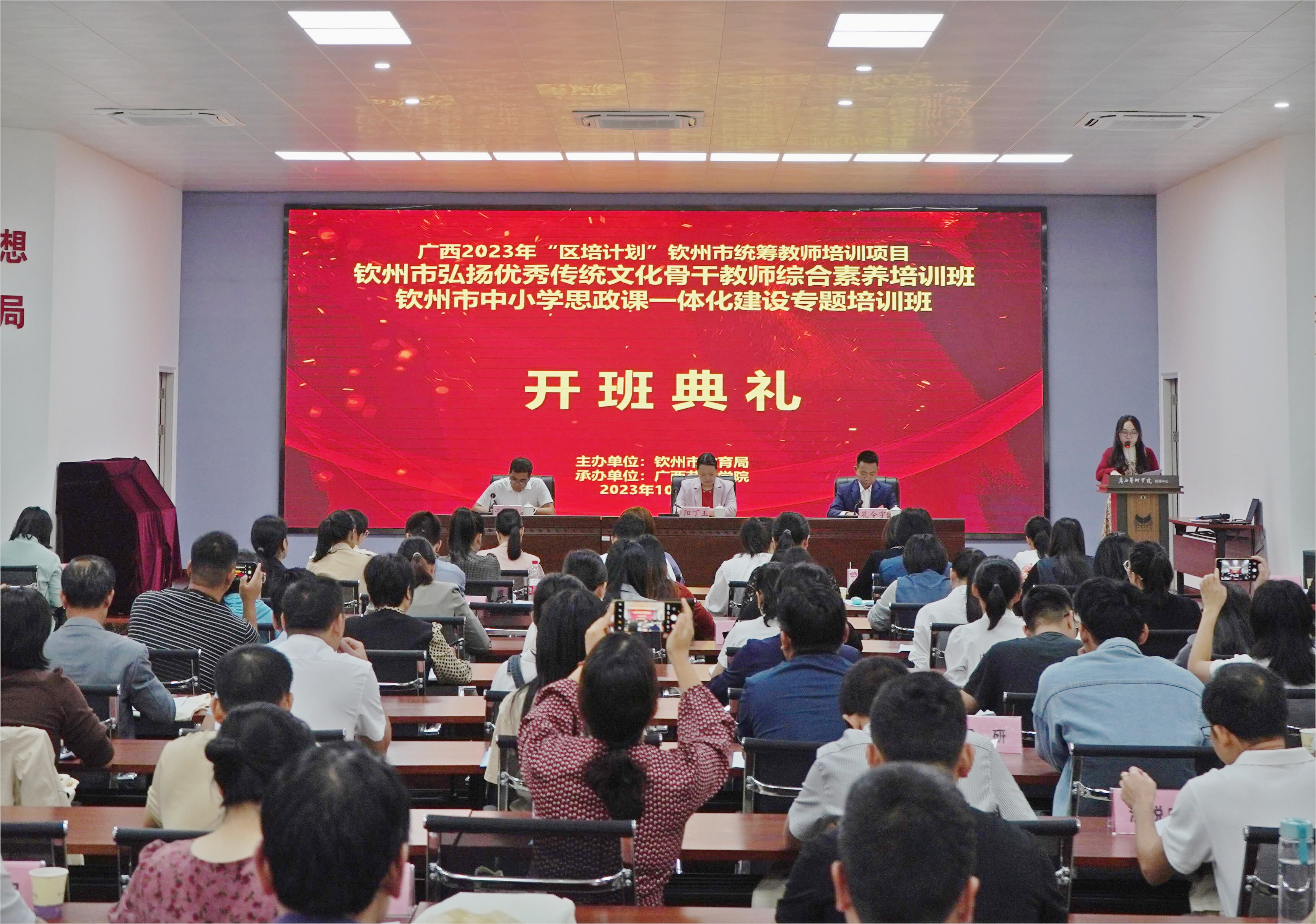 10月23日-10月30日,广西2023年 “区培计划”钦州市统筹教师培训项目——钦州市中小学思政课一体化建设专题培训班、钦州市弘扬优秀传统文化骨干教师综合素养培训班(第一阶段)在公司培训中心成功举办。本次培训班由钦州市教育局主办,伟德bevictor中文版承办,由伟德bevictor中文版培训中心具体实施开展。钦州市教育局人教科阳丁玉副科长,bevictor伟德经理/培训中心主任孔令宇出席开班典礼并讲话,来自钦州市各县区的120名教师参加了此次培训。